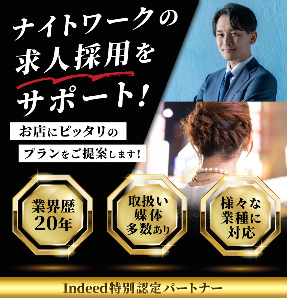 ナイトワークに強い求人広告代理店として「Indeed」「バイトル」などの主要媒体をはじめ、ナイトワーク専門サイト「ポケパラ」「体入ショコラ」などの取り扱いもございます!